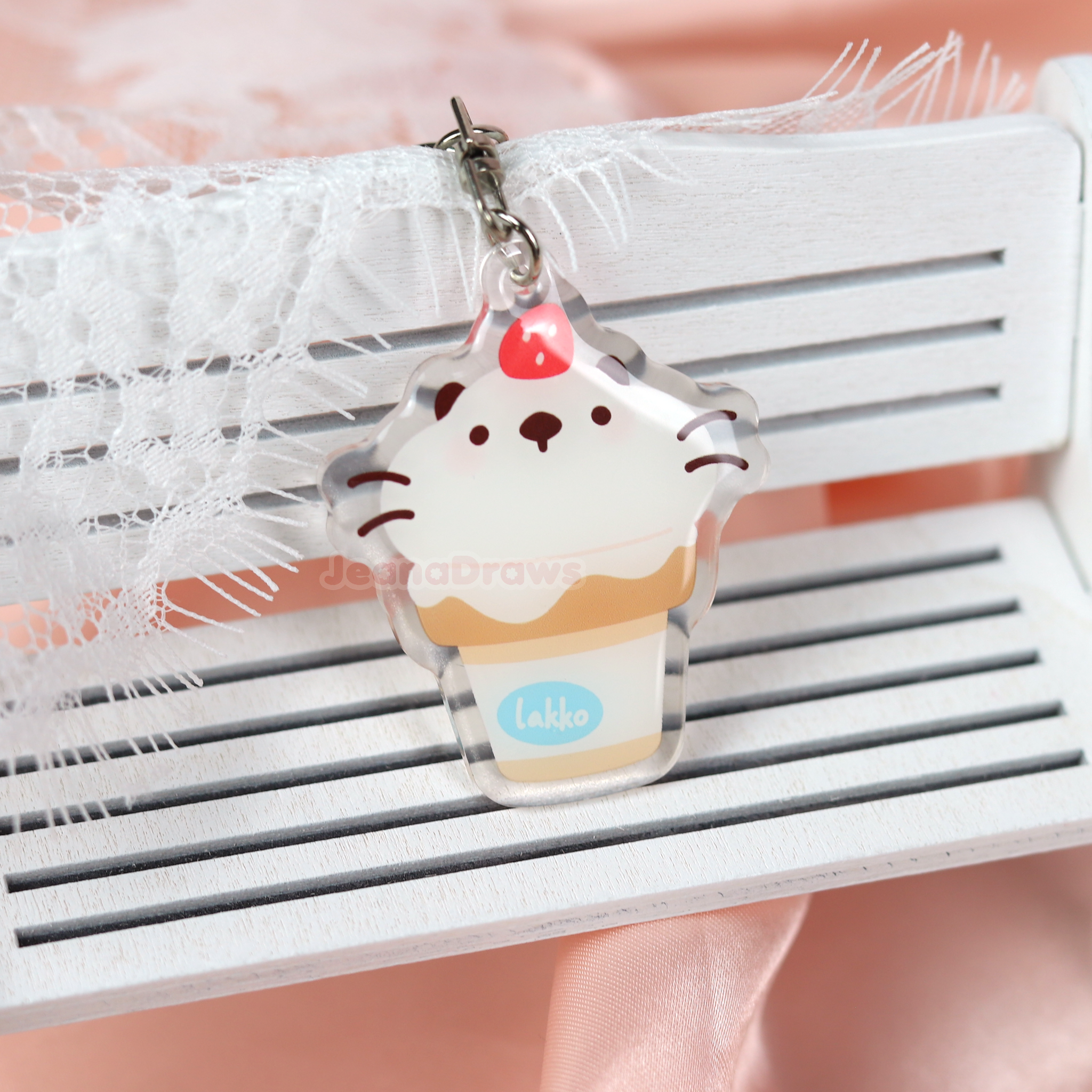 ❥ 1.77" tall acrylic keychain with double sided print, epoxy coat on one side and silver clasp